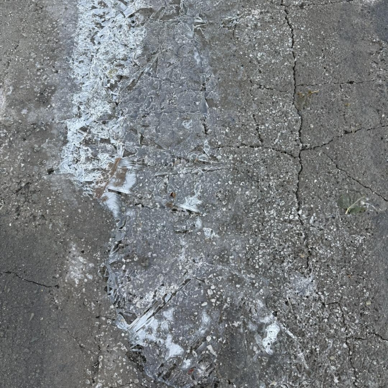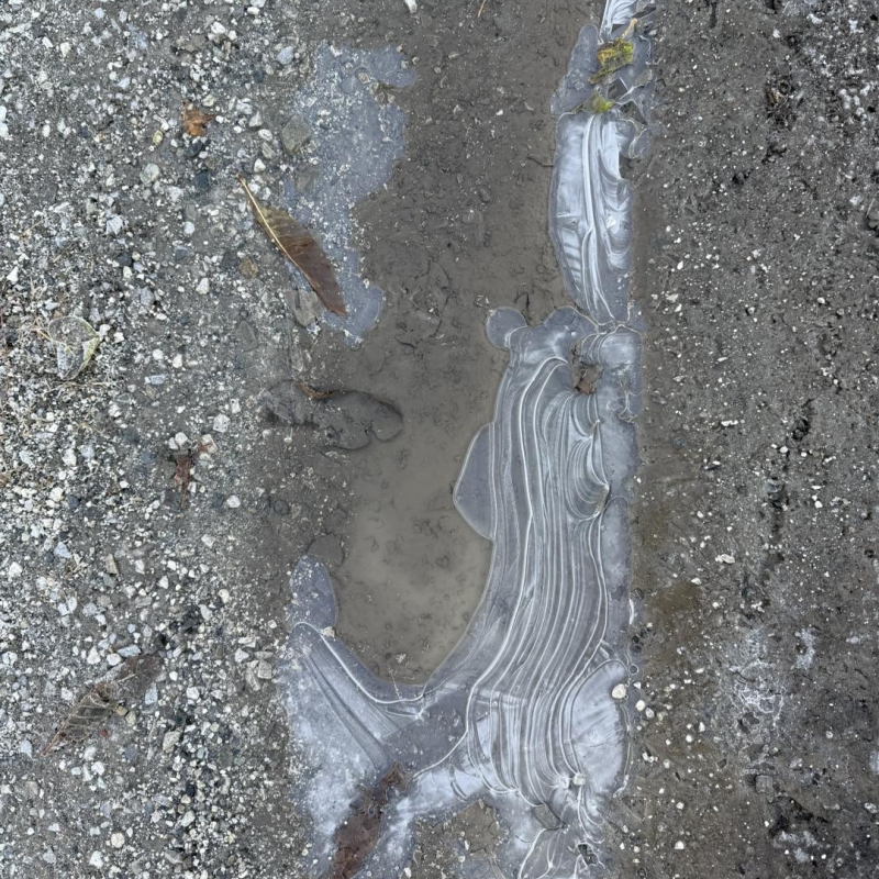 昨天積了一些雪,不過後來又下了雨,因此今天早上起床就是到處結冰,道路上看起來好像沒什麼差別,但其實結了一層薄薄的冰。