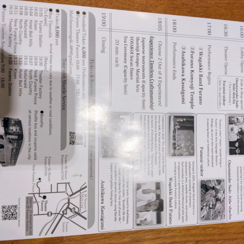 Tickets: Contact Furano Tourism or the Furano Theater Factory box office.